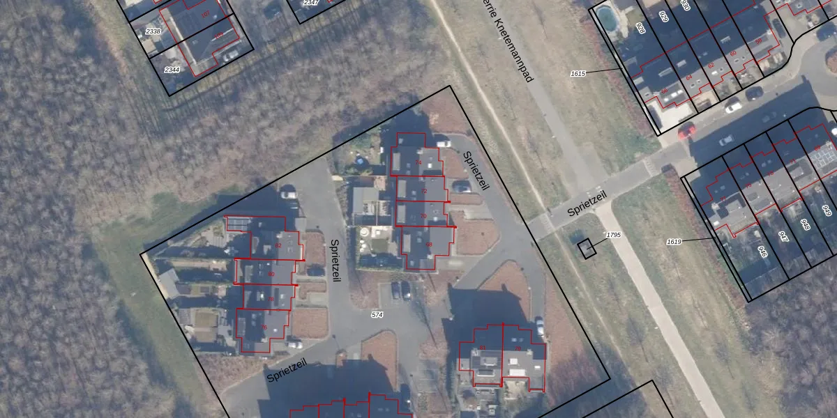Het perceel waarop Sprietzeil 70 staat heeft een oppervlakte van 6749 m². Dit is een zeer groot perceel. De perceeloppervlakte wordt geregistreerd door het Kadaster. Gedetailleerde informatie over de maten van dit perceel kunt u vinden in het rapport Kadastrale kaart met maatvoering van Sprietzeil 70.