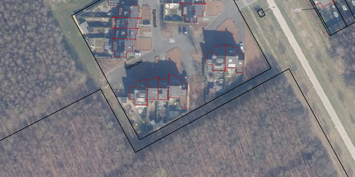 Het perceel waarop Sprietzeil 83 staat heeft een oppervlakte van 6749 m². Dit is een zeer groot perceel. De perceeloppervlakte wordt geregistreerd door het Kadaster. Gedetailleerde informatie over de maten van dit perceel kunt u vinden in het rapport Kadastrale kaart met maatvoering van Sprietzeil 83.
