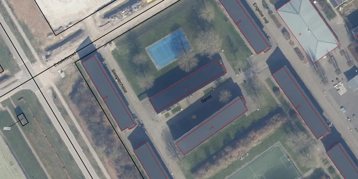 Het perceel waarop Sprint 6 staat heeft een oppervlakte van 3,9 ha. Dit is een zeer groot perceel. De perceeloppervlakte wordt geregistreerd door het Kadaster. Gedetailleerde informatie over de maten van dit perceel kunt u vinden in het rapport Kadastrale kaart met maatvoering van Sprint 6.