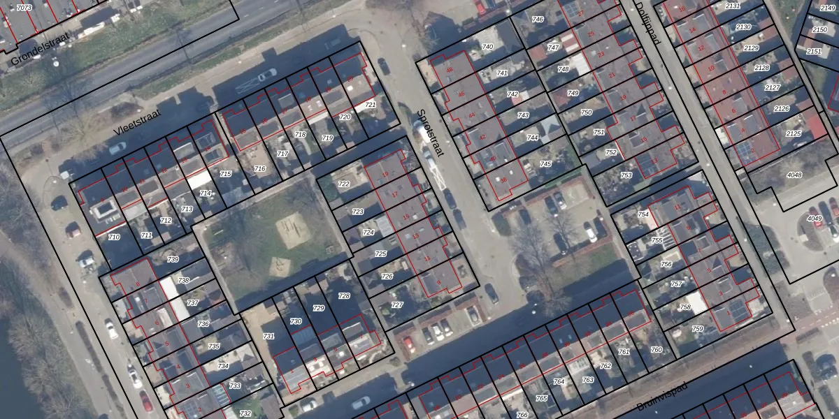Het perceel waarop Sprotstraat 15 staat heeft een oppervlakte van 136 m². Dit is een middelgroot perceel. De perceeloppervlakte wordt geregistreerd door het Kadaster. Gedetailleerde informatie over de maten van dit perceel kunt u vinden in het rapport Kadastrale kaart met maatvoering van Sprotstraat 15.