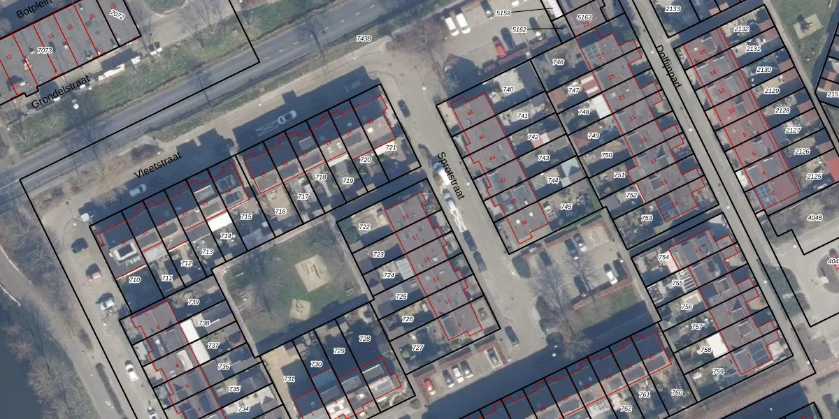 Het perceel waarop Sprotstraat 19 staat heeft een oppervlakte van 198 m². Dit is een middelgroot perceel. De perceeloppervlakte wordt geregistreerd door het Kadaster. Gedetailleerde informatie over de maten van dit perceel kunt u vinden in het rapport Kadastrale kaart met maatvoering van Sprotstraat 19.