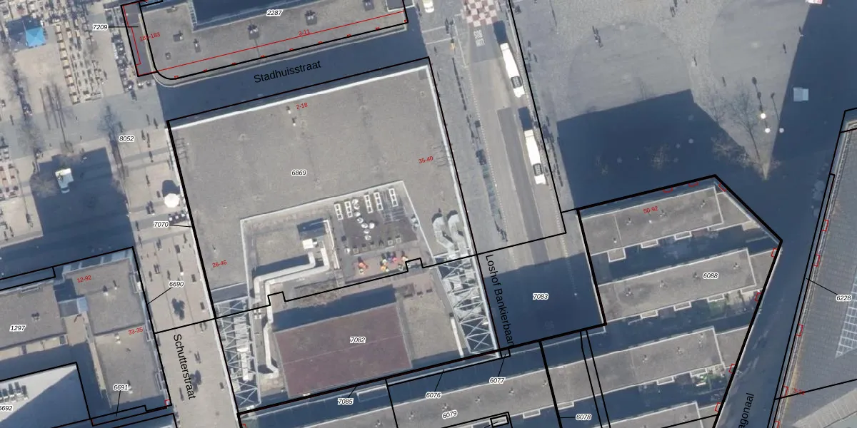Het perceel waarop Stadhuisplein 36 staat heeft een oppervlakte van 2955 m². Dit is een zeer groot perceel. De perceeloppervlakte wordt geregistreerd door het Kadaster. Gedetailleerde informatie over de maten van dit perceel kunt u vinden in het rapport Kadastrale kaart met maatvoering van Stadhuisplein 36.