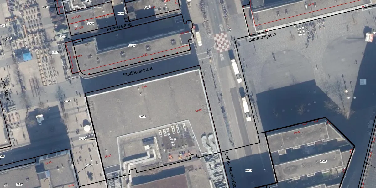 Het perceel waarop Stadhuisplein 38 staat heeft een oppervlakte van 2955 m². Dit is een zeer groot perceel. De perceeloppervlakte wordt geregistreerd door het Kadaster. Gedetailleerde informatie over de maten van dit perceel kunt u vinden in het rapport Kadastrale kaart met maatvoering van Stadhuisplein 38.