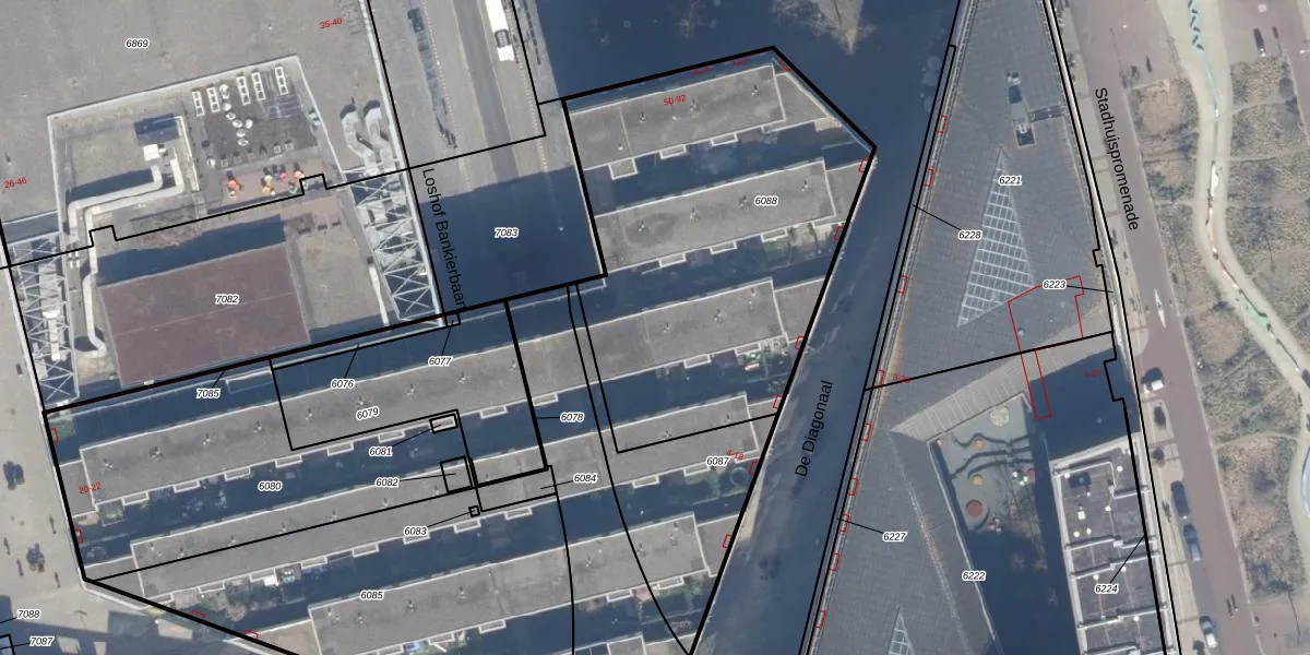 Het perceel waarop Stadhuisplein 59 staat heeft een oppervlakte van 1993 m². Dit is een zeer groot perceel. De perceeloppervlakte wordt geregistreerd door het Kadaster. Gedetailleerde informatie over de maten van dit perceel kunt u vinden in het rapport Kadastrale kaart met maatvoering van Stadhuisplein 59.