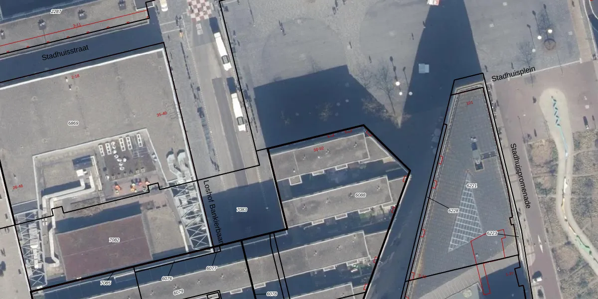 Het perceel waarop Stadhuisplein 90-A staat heeft een oppervlakte van 1993 m². Dit is een zeer groot perceel. De perceeloppervlakte wordt geregistreerd door het Kadaster. Gedetailleerde informatie over de maten van dit perceel kunt u vinden in het rapport Kadastrale kaart met maatvoering van Stadhuisplein 90-A.