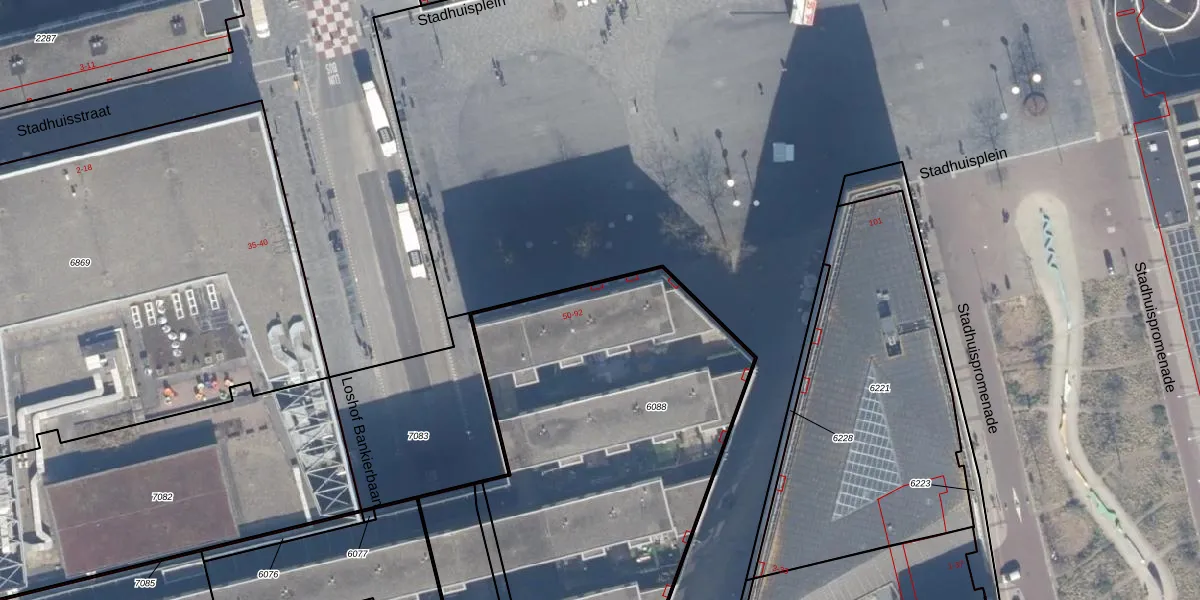 Het perceel waarop Stadhuisplein 91 staat heeft een oppervlakte van 1993 m². Dit is een zeer groot perceel. De perceeloppervlakte wordt geregistreerd door het Kadaster. Gedetailleerde informatie over de maten van dit perceel kunt u vinden in het rapport Kadastrale kaart met maatvoering van Stadhuisplein 91.
