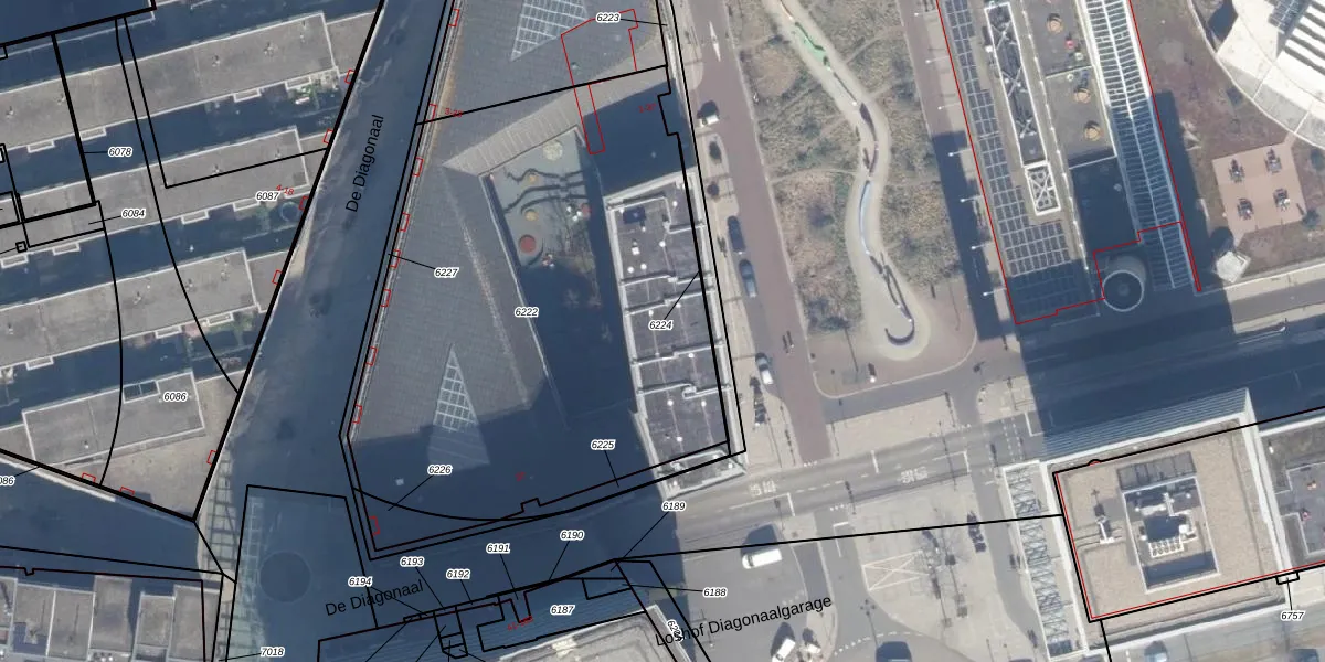 Het perceel waarop Stadhuispromenade 14 staat heeft een oppervlakte van 2887 m². Dit is een zeer groot perceel. De perceeloppervlakte wordt geregistreerd door het Kadaster. Gedetailleerde informatie over de maten van dit perceel kunt u vinden in het rapport Kadastrale kaart met maatvoering van Stadhuispromenade 14.