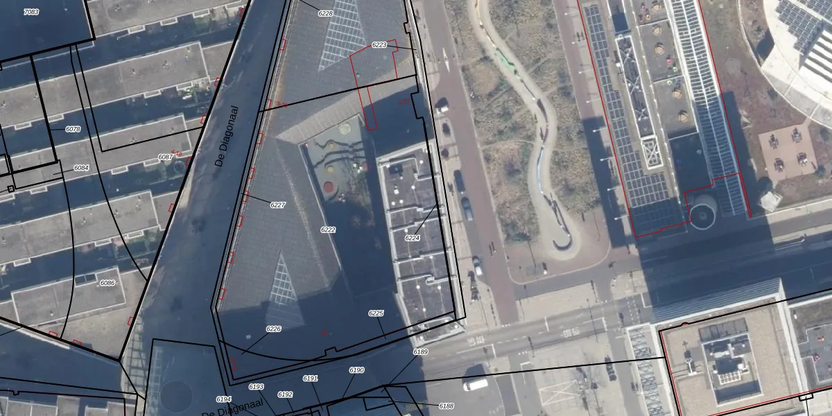 Het perceel waarop Stadhuispromenade 19 staat heeft een oppervlakte van 2887 m². Dit is een zeer groot perceel. De perceeloppervlakte wordt geregistreerd door het Kadaster. Gedetailleerde informatie over de maten van dit perceel kunt u vinden in het rapport Kadastrale kaart met maatvoering van Stadhuispromenade 19.