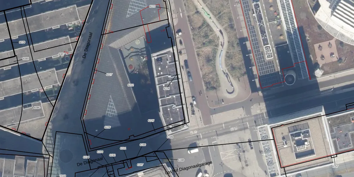 Het perceel waarop Stadhuispromenade 32 staat heeft een oppervlakte van 2887 m². Dit is een zeer groot perceel. De perceeloppervlakte wordt geregistreerd door het Kadaster. Gedetailleerde informatie over de maten van dit perceel kunt u vinden in het rapport Kadastrale kaart met maatvoering van Stadhuispromenade 32.
