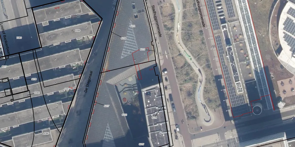 Het perceel waarop Stadhuispromenade 4 staat heeft een oppervlakte van 2887 m². Dit is een zeer groot perceel. De perceeloppervlakte wordt geregistreerd door het Kadaster. Gedetailleerde informatie over de maten van dit perceel kunt u vinden in het rapport Kadastrale kaart met maatvoering van Stadhuispromenade 4.