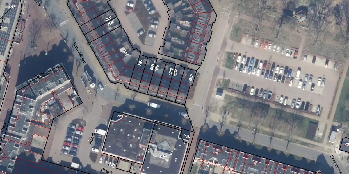 Gebruik de zoekbalk of klik op een perceel voor informatie over de adressen binnen dit perceel.