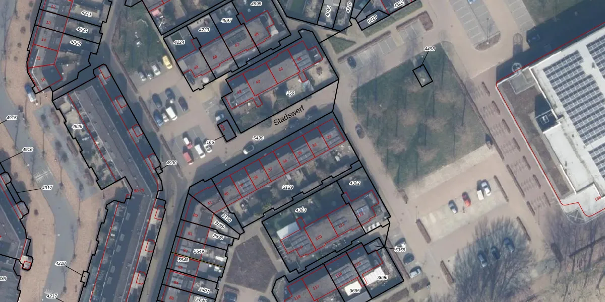 Het perceel waarop Stadswerf 35 staat heeft een oppervlakte van 858 m². Dit is een groot perceel. De perceeloppervlakte wordt geregistreerd door het Kadaster. Gedetailleerde informatie over de maten van dit perceel kunt u vinden in het rapport Kadastrale kaart met maatvoering van Stadswerf 35.