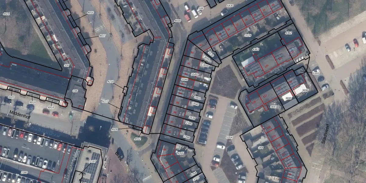 Gebruik de zoekbalk of klik op een perceel voor informatie over de adressen binnen dit perceel.