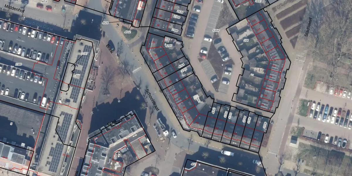 Het perceel waarop Stadswerf 94 staat heeft een oppervlakte van 596 m². Dit is een groot perceel. De perceeloppervlakte wordt geregistreerd door het Kadaster. Gedetailleerde informatie over de maten van dit perceel kunt u vinden in het rapport Kadastrale kaart met maatvoering van Stadswerf 94.