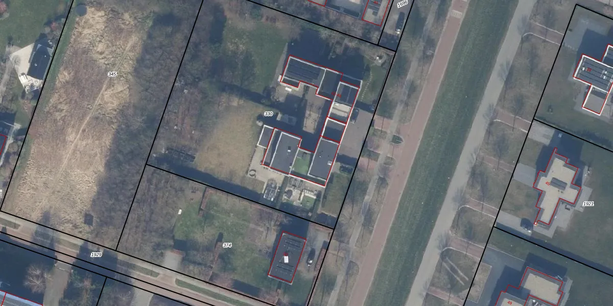 Het adres is gelegen op perceel 330 in de sectie D en de kadastrale gemeente Almere. De kadastrale aanduiding is aldus AMR04-D-330. Het perceel is met 3997 m² relatief groot. Het gemiddelde ligt in de kadastrale gemeente Almere op 3329,62 m². Het grootste perceel in de kadastrale gemeente is 32,12 km². Het kleinste perceel heeft een oppervlakte van 0 m². Er zijn 4 adressen aanwezig op het perceel. In de Basisregistratie Kadaster (BRK) werden de grenzen van het perceel geregistreerd op 31-08-2011.