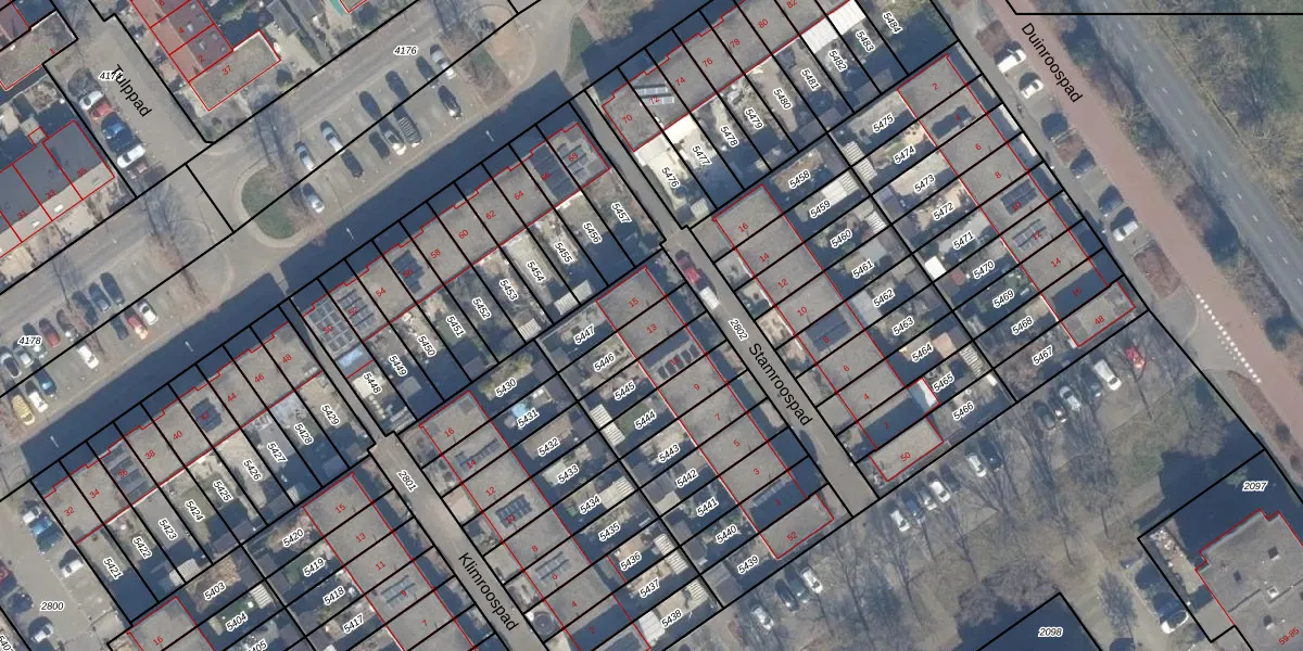 Gebruik de zoekbalk of klik op een perceel voor informatie over de adressen binnen dit perceel.