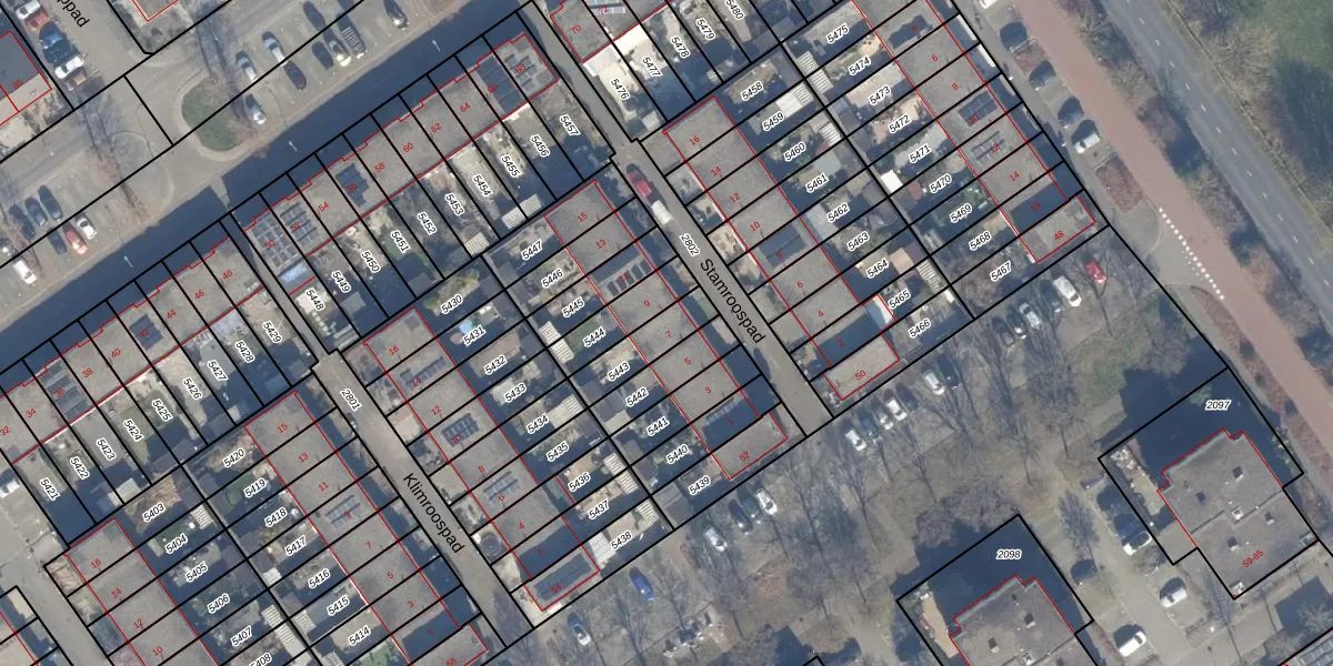 Gebruik de zoekbalk of klik op een perceel voor informatie over de adressen binnen dit perceel.