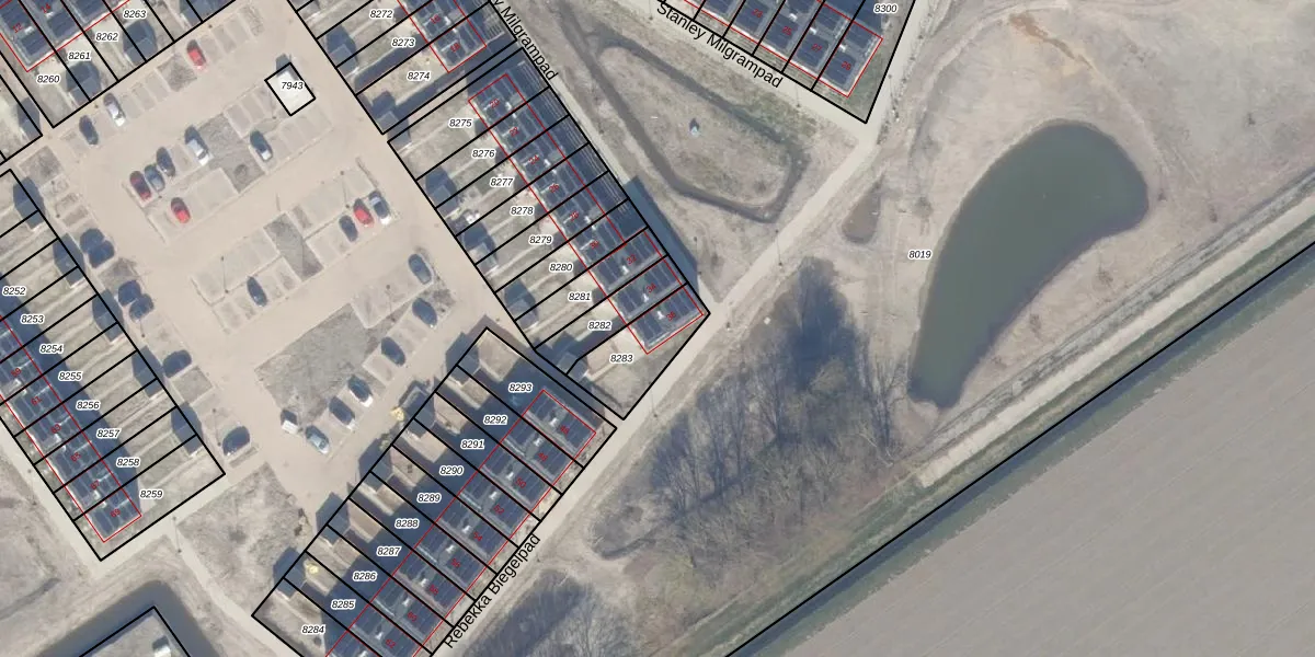 Het perceel waarop het adres ligt is AMR04-C-8283. De afkorting 'AMR04' staat voor kadastrale gemeente Almere. De gemiddelde perceelgrootte in Almere is 3328,15 m². Dit perceel is kleiner: de perceeloppervlakte bedraagt 191 m². Het grootste perceel in de kadastrale gemeente is 32,12 km². Het kleinste perceel heeft een oppervlakte van 0 m². Op het perceel bevinden zich geen andere adressen. In de Basisregistratie Kadaster (BRK) werden de grenzen van het perceel geregistreerd op 17-04-2025.