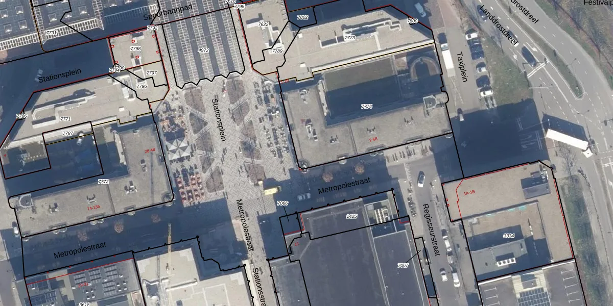 Het perceel waarop Stationsplein 1 staat heeft een oppervlakte van 1549 m². Dit is een zeer groot perceel. De perceeloppervlakte wordt geregistreerd door het Kadaster. Gedetailleerde informatie over de maten van dit perceel kunt u vinden in het rapport Kadastrale kaart met maatvoering van Stationsplein 1.