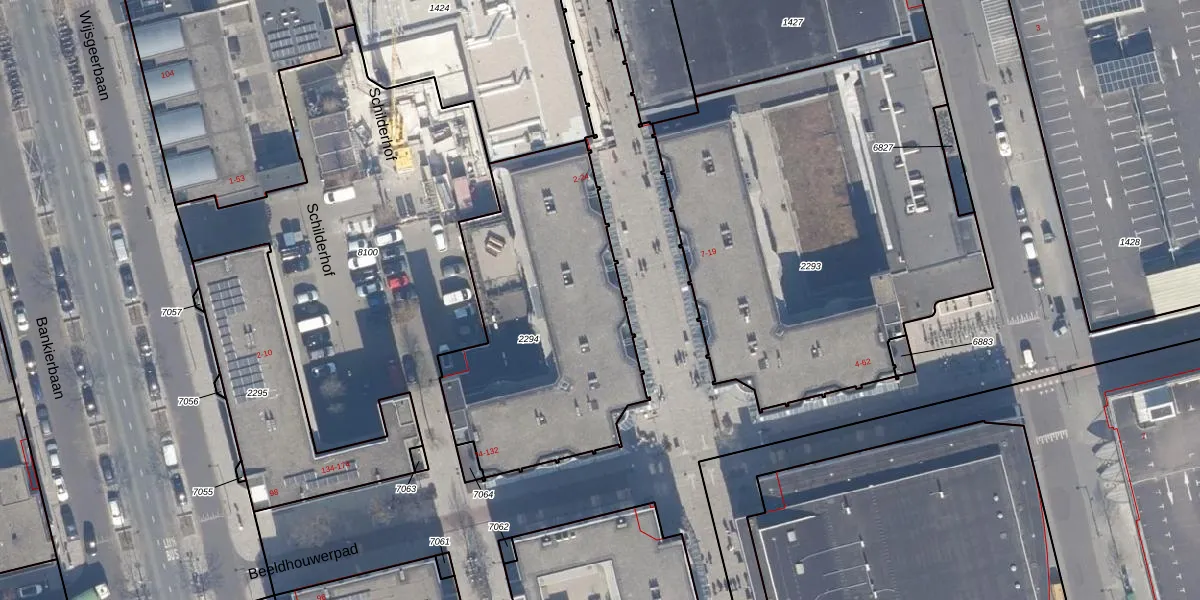 Het adres is gelegen op perceel 2294 in de sectie K en de kadastrale gemeente Almere. De kadastrale aanduiding is aldus AMR04-K-2294. Het perceel is kleiner dan gemiddeld in Almere. Het perceel is 1287 m² groot, terwijl het gemiddelde ligt op 3329,36 m². De grootste perceeloppervlakte in de kadastrale gemeente is 32,12 km². De kleinste oppervlakte bedraagt 0 m². Op het perceel zijn 36 adressen aanwezig. De huidige grenzen van het perceel zijn digitaal in de Basisregistratie Kadaster (BRK) geregistreerd op 18-05-2015.