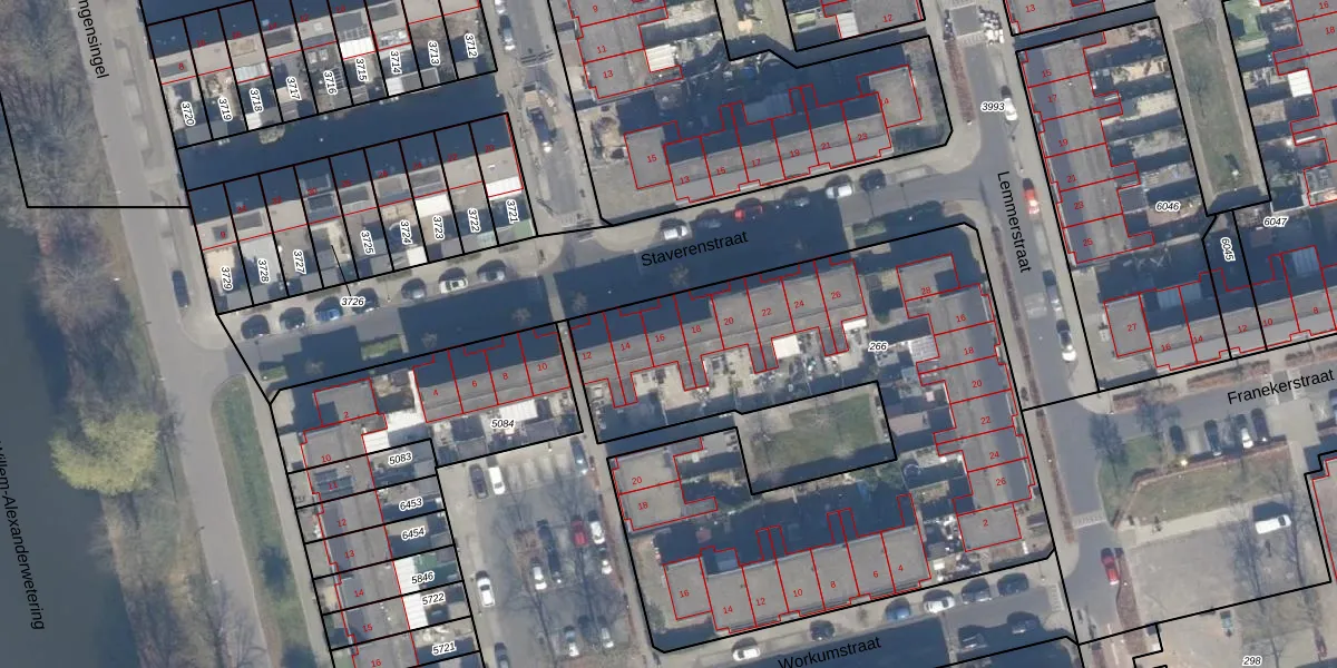 Het perceel waarop Staverenstraat 16 staat heeft een oppervlakte van 2898 m². Dit is een zeer groot perceel. De perceeloppervlakte wordt geregistreerd door het Kadaster. Gedetailleerde informatie over de maten van dit perceel kunt u vinden in het rapport Kadastrale kaart met maatvoering van Staverenstraat 16.