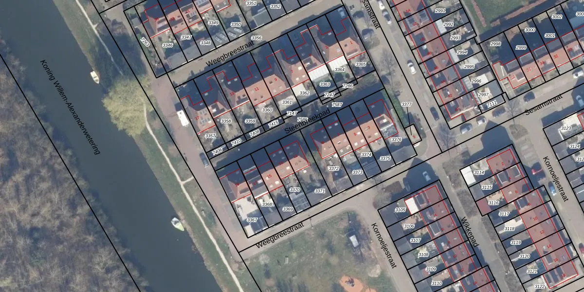 Gebruik de zoekbalk of klik op een perceel voor informatie over de adressen binnen dit perceel.