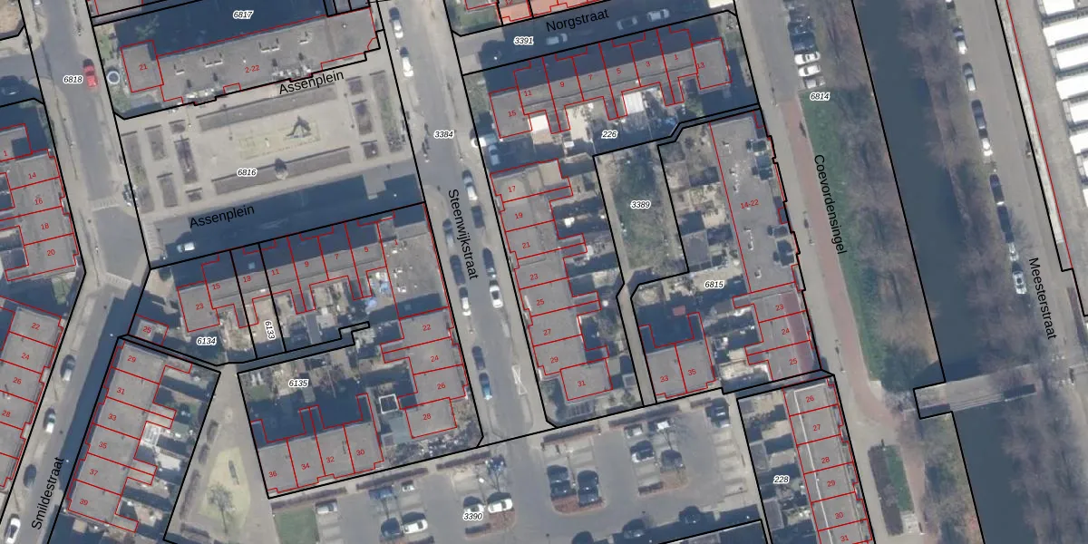 Het perceel waarop Steenwijkstraat 23 staat heeft een oppervlakte van 1893 m². Dit is een zeer groot perceel. De perceeloppervlakte wordt geregistreerd door het Kadaster. Gedetailleerde informatie over de maten van dit perceel kunt u vinden in het rapport Kadastrale kaart met maatvoering van Steenwijkstraat 23.