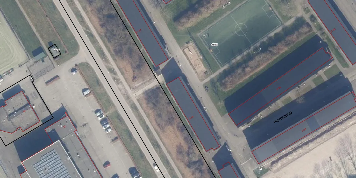 Het perceel waarop Steeplechase 12 staat heeft een oppervlakte van 3,9 ha. Dit is een zeer groot perceel. De perceeloppervlakte wordt geregistreerd door het Kadaster. Gedetailleerde informatie over de maten van dit perceel kunt u vinden in het rapport Kadastrale kaart met maatvoering van Steeplechase 12.