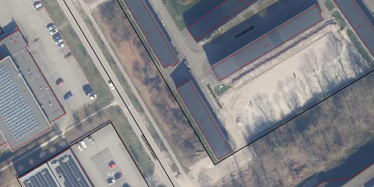 Het perceel waarop Steeplechase 4 staat heeft een oppervlakte van 3,9 ha. Dit is een zeer groot perceel. De perceeloppervlakte wordt geregistreerd door het Kadaster. Gedetailleerde informatie over de maten van dit perceel kunt u vinden in het rapport Kadastrale kaart met maatvoering van Steeplechase 4.