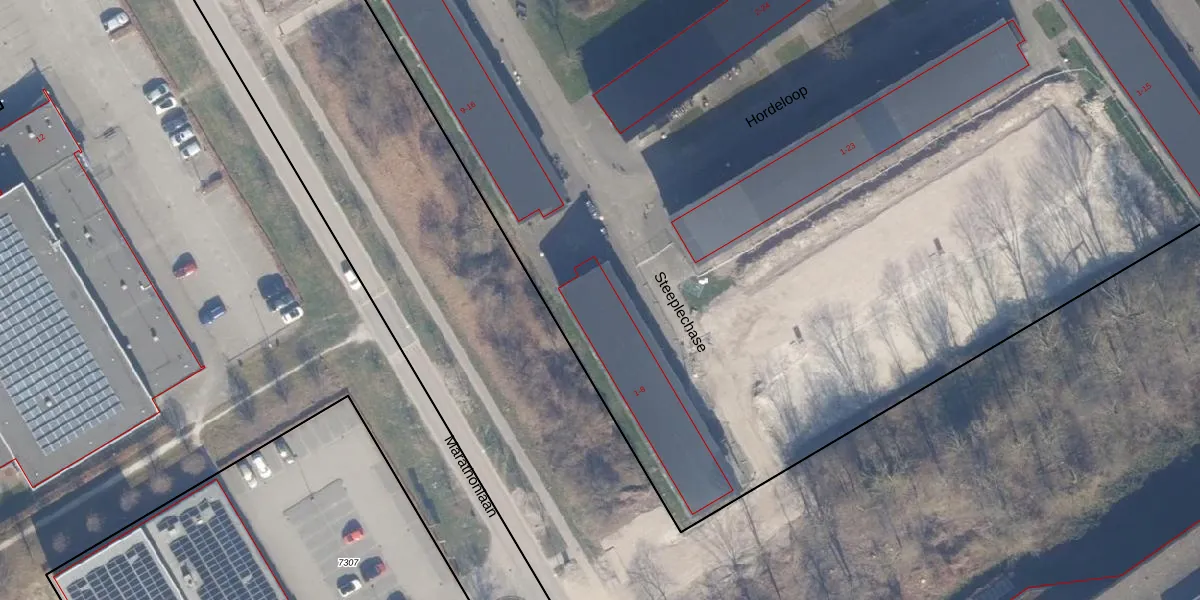 Het perceel waarop Steeplechase 8 staat heeft een oppervlakte van 3,9 ha. Dit is een zeer groot perceel. De perceeloppervlakte wordt geregistreerd door het Kadaster. Gedetailleerde informatie over de maten van dit perceel kunt u vinden in het rapport Kadastrale kaart met maatvoering van Steeplechase 8.