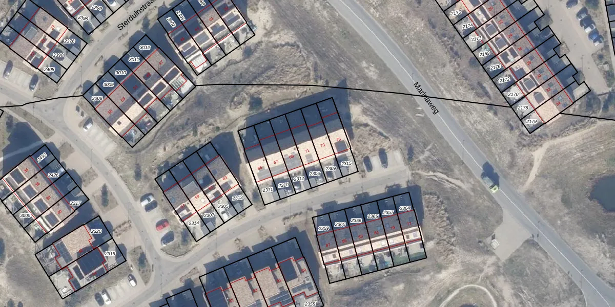 Sterduinstraat 71 is gelegen op kadastraal perceel AMR04F2306. Deze kadastrale aanduiding is uniek en wordt gebruikt door het Kadaster om eigendomsrechten en andere zakelijke rechten vast te leggen. Het perceel maakt onderdeel uit van de kadastrale gemeente Almere.