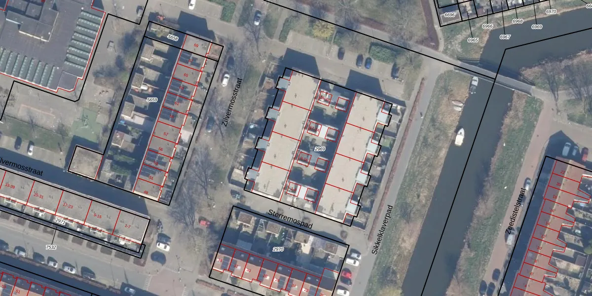 Het perceel waarop Sterremospad 11 staat heeft een oppervlakte van 1690 m². Dit is een zeer groot perceel. De perceeloppervlakte wordt geregistreerd door het Kadaster. Gedetailleerde informatie over de maten van dit perceel kunt u vinden in het rapport Kadastrale kaart met maatvoering van Sterremospad 11.