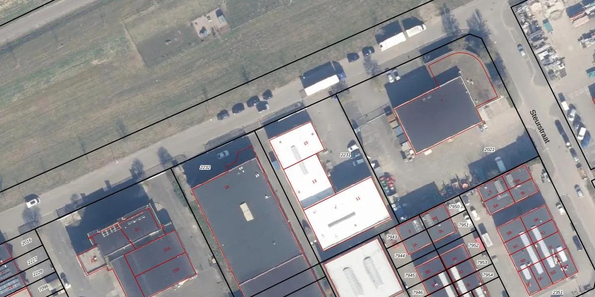 Het perceel waarop Steurstraat 15 staat heeft een oppervlakte van 1477 m². Dit is een zeer groot perceel. De perceeloppervlakte wordt geregistreerd door het Kadaster. Gedetailleerde informatie over de maten van dit perceel kunt u vinden in het rapport Kadastrale kaart met maatvoering van Steurstraat 15.