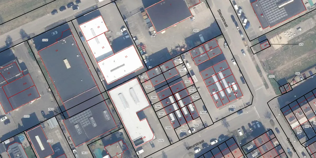 Gebruik de zoekbalk of klik op een perceel voor informatie over de adressen binnen dit perceel.