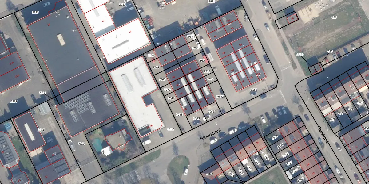Het perceel waarop Steurstraat 3-D staat heeft een oppervlakte van 74 m². Dit is een klein perceel. De perceeloppervlakte wordt geregistreerd door het Kadaster. Gedetailleerde informatie over de maten van dit perceel kunt u vinden in het rapport Kadastrale kaart met maatvoering van Steurstraat 3-D.
