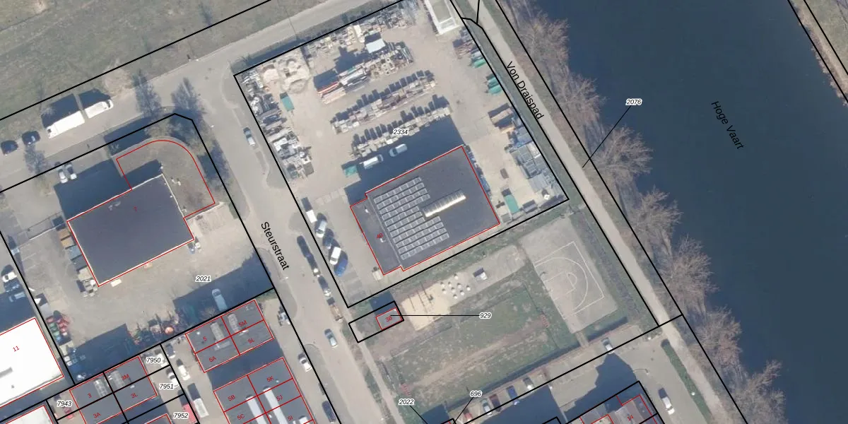 Gebruik de zoekbalk of klik op een perceel voor informatie over de adressen binnen dit perceel.