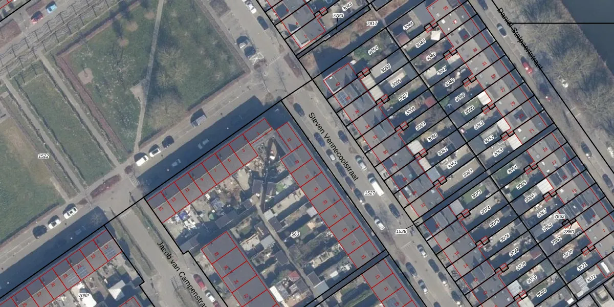 Het perceel waarop Steven Vennecoolstraat 39 staat heeft een oppervlakte van 3182 m². Dit is een zeer groot perceel. De perceeloppervlakte wordt geregistreerd door het Kadaster. Gedetailleerde informatie over de maten van dit perceel kunt u vinden in het rapport Kadastrale kaart met maatvoering van Steven Vennecoolstraat 39.