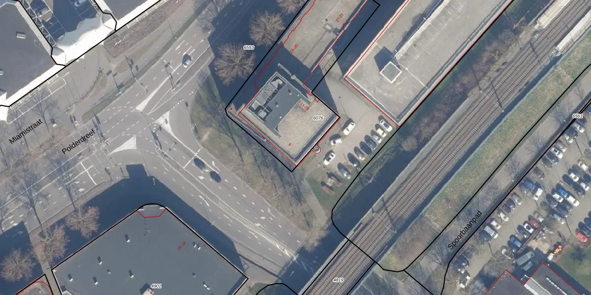 Het perceel waarop het adres ligt is AMR04-N-6076. De afkorting 'AMR04' staat voor kadastrale gemeente Almere. De gemiddelde perceelgrootte in Almere is 3327,62 m². Dit perceel is kleiner: de perceeloppervlakte bedraagt 1521 m². De grootste perceeloppervlakte in de kadastrale gemeente is 32,12 km². De kleinste oppervlakte bedraagt 0 m². Er zijn 71 adressen aanwezig op het perceel. In de Basisregistratie Kadaster (BRK) werden de grenzen van het perceel geregistreerd op 02-05-2011.