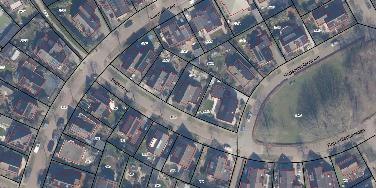Het perceel waarop Suitestraat 4 staat heeft een oppervlakte van 387 m². Dit is een groot perceel. De perceeloppervlakte wordt geregistreerd door het Kadaster. Gedetailleerde informatie over de maten van dit perceel kunt u vinden in het rapport Kadastrale kaart met maatvoering van Suitestraat 4.