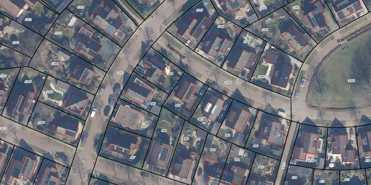 Suitestraat 7 is gelegen op kadastraal perceel AMR04Q983. Deze kadastrale aanduiding is uniek en wordt gebruikt door het Kadaster om eigendomsrechten en andere zakelijke rechten vast te leggen. Het perceel maakt onderdeel uit van de kadastrale gemeente Almere.