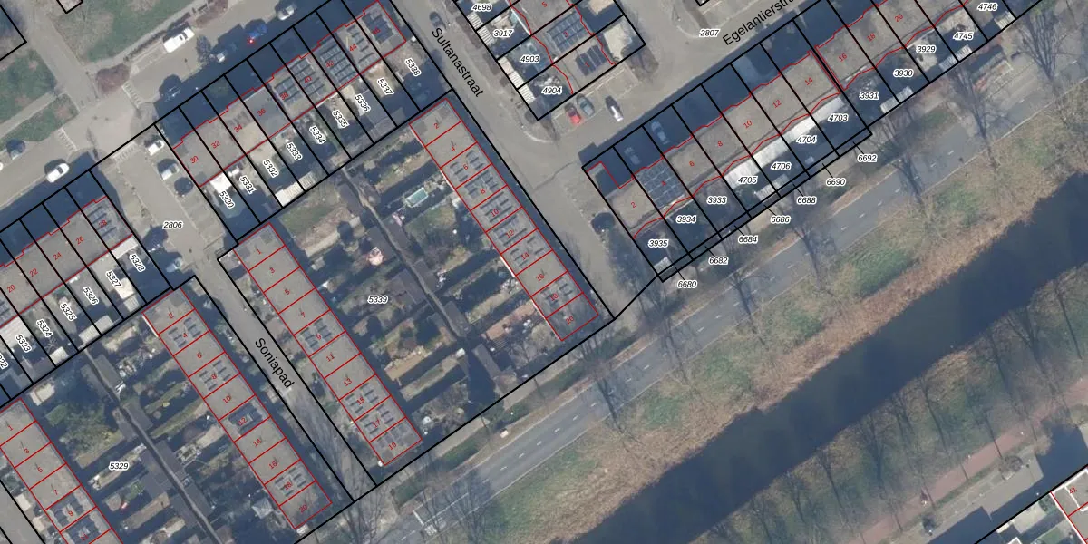 Het perceel waarop Sultanastraat 16 staat heeft een oppervlakte van 2766 m². Dit is een zeer groot perceel. De perceeloppervlakte wordt geregistreerd door het Kadaster. Gedetailleerde informatie over de maten van dit perceel kunt u vinden in het rapport Kadastrale kaart met maatvoering van Sultanastraat 16.