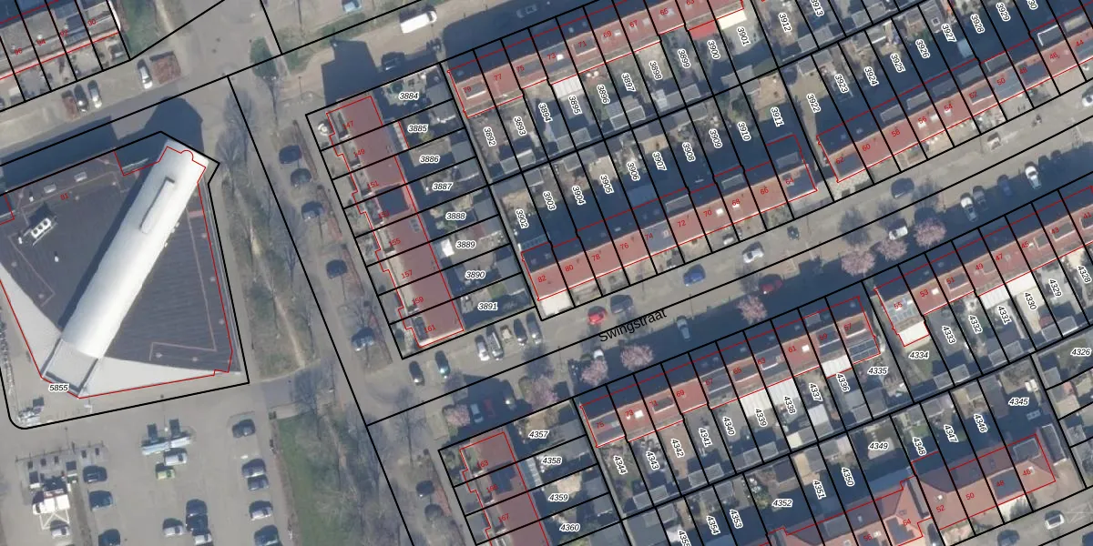 Het perceel waarop Swingstraat 82 staat heeft een oppervlakte van 176 m². Dit is een middelgroot perceel. De perceeloppervlakte wordt geregistreerd door het Kadaster. Gedetailleerde informatie over de maten van dit perceel kunt u vinden in het rapport Kadastrale kaart met maatvoering van Swingstraat 82.