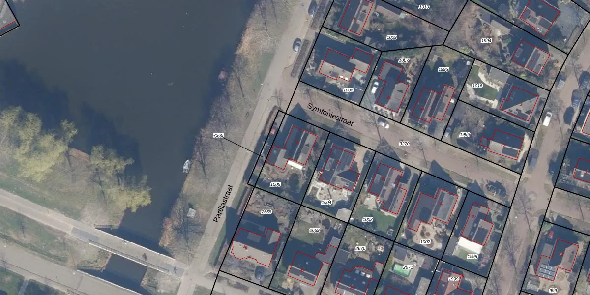Het perceel waarop Symfoniestraat 35 staat heeft een oppervlakte van 445 m². Dit is een groot perceel. De perceeloppervlakte wordt geregistreerd door het Kadaster. Gedetailleerde informatie over de maten van dit perceel kunt u vinden in het rapport Kadastrale kaart met maatvoering van Symfoniestraat 35.