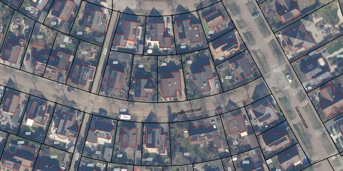 Het perceel waarop Symfoniestraat 4 staat heeft een oppervlakte van 430 m². Dit is een groot perceel. De perceeloppervlakte wordt geregistreerd door het Kadaster. Gedetailleerde informatie over de maten van dit perceel kunt u vinden in het rapport Kadastrale kaart met maatvoering van Symfoniestraat 4.