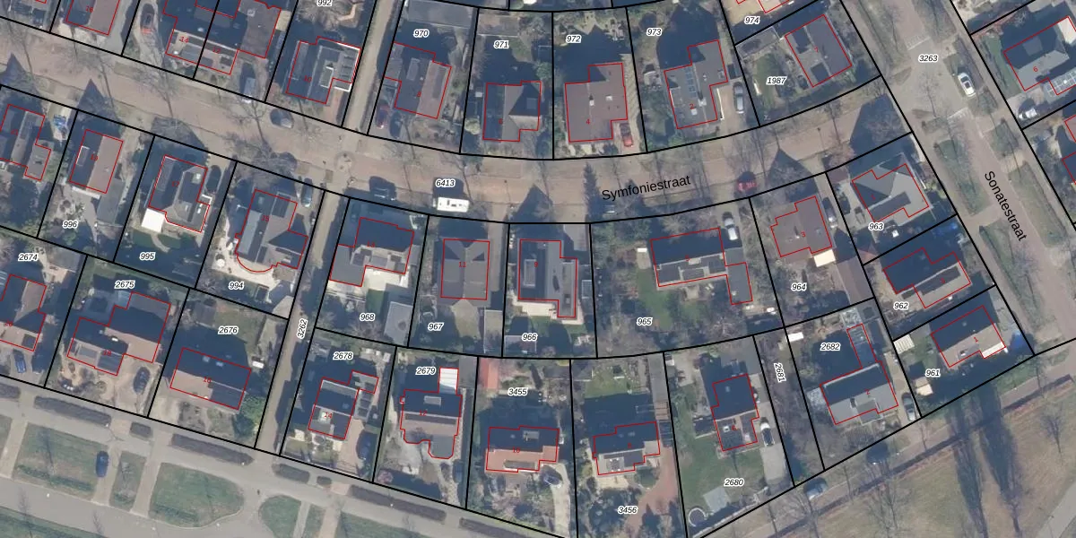 Het perceel waarop Symfoniestraat 9 staat heeft een oppervlakte van 409 m². Dit is een groot perceel. De perceeloppervlakte wordt geregistreerd door het Kadaster. Gedetailleerde informatie over de maten van dit perceel kunt u vinden in het rapport Kadastrale kaart met maatvoering van Symfoniestraat 9.