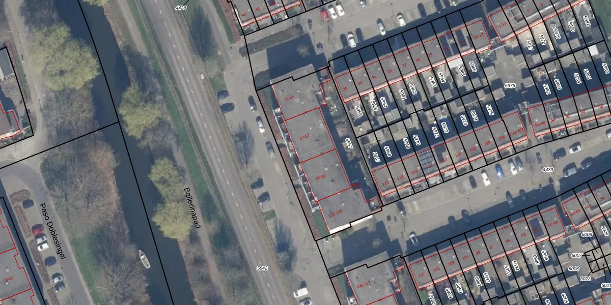 Het perceel waarop Tangostraat 49 staat heeft een oppervlakte van 1281 m². Dit is een zeer groot perceel. De perceeloppervlakte wordt geregistreerd door het Kadaster. Gedetailleerde informatie over de maten van dit perceel kunt u vinden in het rapport Kadastrale kaart met maatvoering van Tangostraat 49.