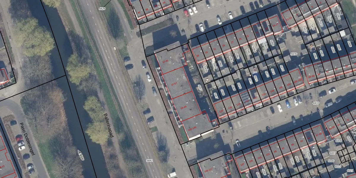 Het adres is gelegen op perceel 5957 in de sectie U en de kadastrale gemeente Almere. De kadastrale aanduiding is aldus AMR04-U-5957. De gemiddelde perceelgrootte in Almere is 3328,15 m². Dit perceel is kleiner: de perceeloppervlakte bedraagt 1281 m². Het grootste perceel in de kadastrale gemeente is 32,12 km². Het kleinste perceel heeft een oppervlakte van 0 m². Op het perceel liggen in totaal 22 adressen. In de Basisregistratie Kadaster (BRK) werden de grenzen van het perceel geregistreerd op 15-08-2000.