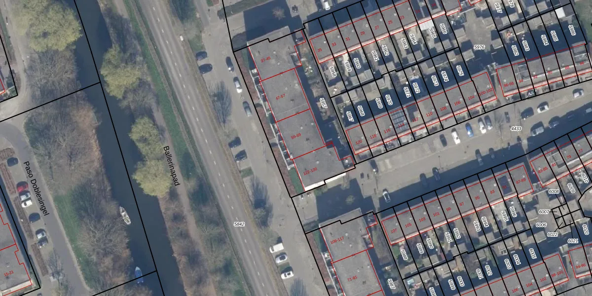 Het adres is gelegen op perceel 5957 in de sectie U en de kadastrale gemeente Almere. De kadastrale aanduiding is aldus AMR04-U-5957. De gemiddelde perceelgrootte in Almere is 3328,15 m². Dit perceel is kleiner: de perceeloppervlakte bedraagt 1281 m². Het grootste perceel in de kadastrale gemeente is 32,12 km². Het kleinste perceel heeft een oppervlakte van 0 m². Op het perceel liggen in totaal 22 adressen. De laatste wijziging in het de Basisregistratie Kadaster (BRK) was op 15-08-2000.