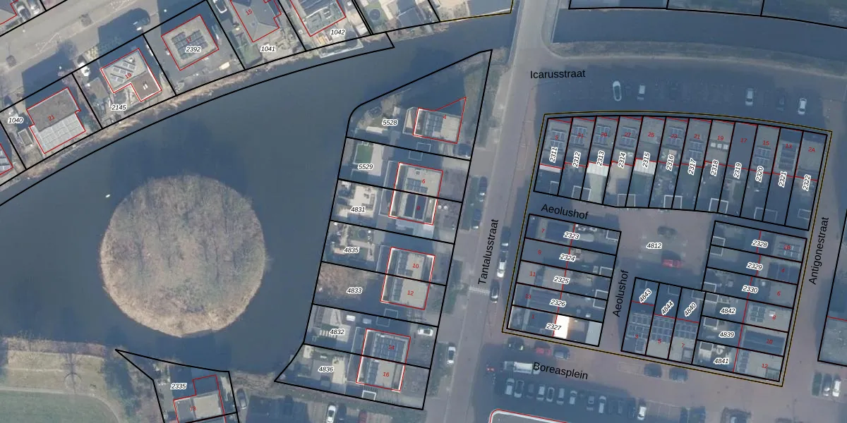 Gebruik de zoekbalk of klik op een perceel voor informatie over de adressen binnen dit perceel.