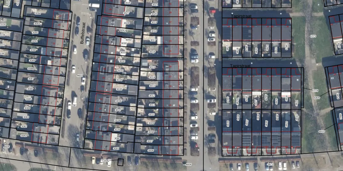 Het perceel waarop Tapirstraat 15 staat heeft een oppervlakte van 141 m². Dit is een middelgroot perceel. De perceeloppervlakte wordt geregistreerd door het Kadaster. Gedetailleerde informatie over de maten van dit perceel kunt u vinden in het rapport Kadastrale kaart met maatvoering van Tapirstraat 15.